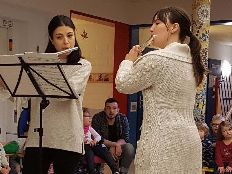 Der Verein "Live Music Now" organisiert eintrittsfreie Konzerte auf hohem Niveau in unterschiedlichen sozialen Einrichtungen. Auch in den Kindergärten Pusteblume waren schon mehrfach hochkarätige Künstler zu Gast, um den Kindern eine besondere Freude zu machen. Im Großen Morgenkreis der Pusteblume konnten nun zwei Musikerinnen aus der Musikakademie Mannheim, Isabel Gonzales und Sofija Kovacewic, begrüßt werden, die es auf wunderbare Weise schafften, die Kinder mit ihrem Querflötenspiel zu verzaubern.
